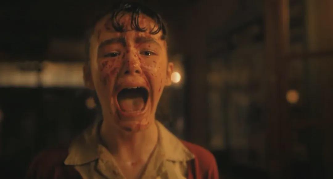 电影屏幕被焚烧,恶魔婴儿冲出屏幕。