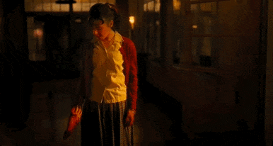 最终,只剩下手中握着一截手臂满脸鲜血的莉莉,被罗妮带出了电影院......