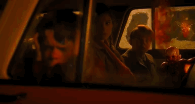 一片血肉模糊过后,后座的马蒂似乎听到了小孩子的声音,好奇地往前看。