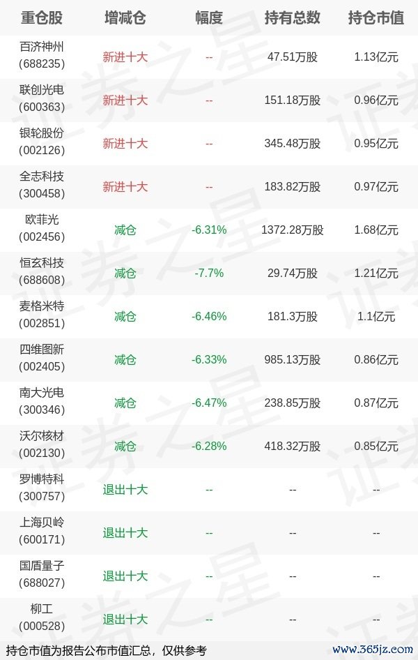 本站消息,4月22日华夏基金旗下赵宗庭管理的华夏中证1000交易型开放式指数基金公布一季报兴华配资,近1年净值增长率14.45%。与上一季度相比,该基金前十大重仓股新增百济神州,联创光电,银轮股份,全志科技;其中欧菲光持仓占比0.6%,为该基金第一大重仓股;罗博特科,上海贝岭,国盾量子,柳工等退出前十大重仓股;详细数据如下: