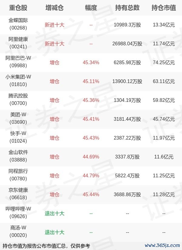 本站消息,4月22日富国基金旗下蔡卡尔 田希蒙管理的富国中证港股通互联网交易型开放式指数基金公布一季报,近1年净值增长率53.35%。与上一季度相比,该基金前十大重仓股新增金蝶国际,阿里健康;并对阿里巴巴-W增仓1961.0万股,为该基金第一大重仓股;哔哩哔哩-W钻石配资,商汤-W等退出前十大重仓股;详细数据如下: